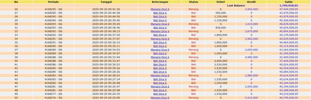 Telah mendapatkan Kemenangan pada liveGames Dice 6