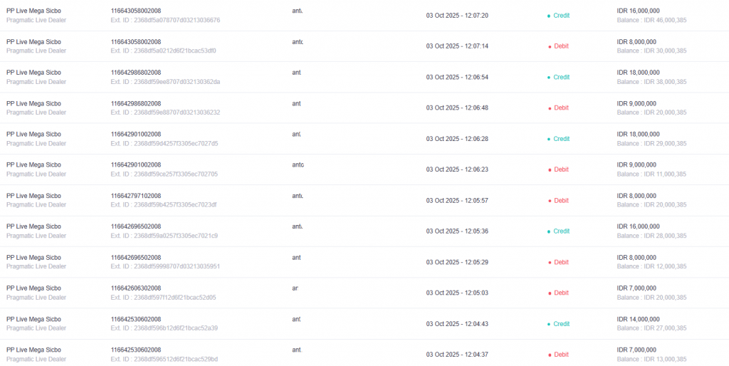 Telah Menang pada PP Live Mega Sicbo dengan Nominal Rp.46,000,000