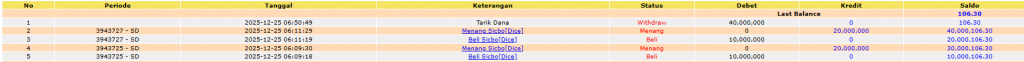 Telah Menang pada Sicbo[Dice]
