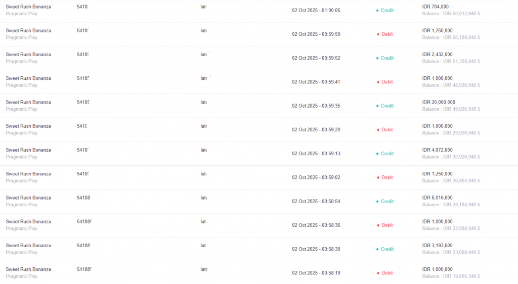 Telah Menang pada Sweet Rush Bonanza dengan Nominal Rp.50,000,000.